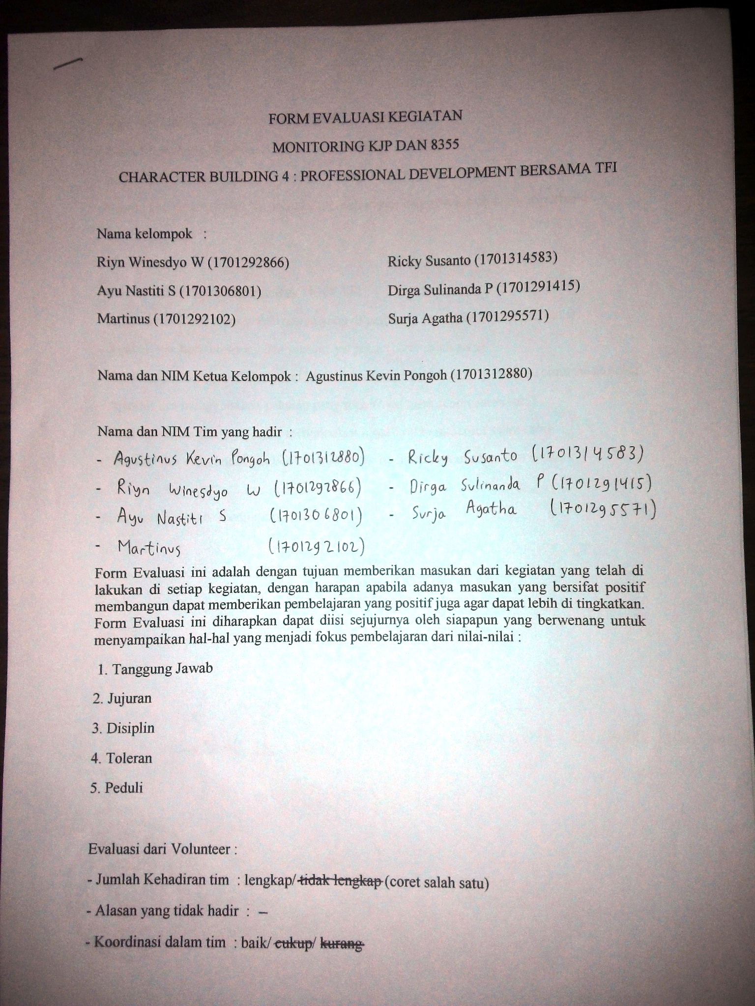 MONITORING KJP DAN 8355 DALAM PENERAPAN CHARACTER BUILDING PROFESSIONAL DEVELOPMENT BERSAMA TEACH FOR INDONESIA